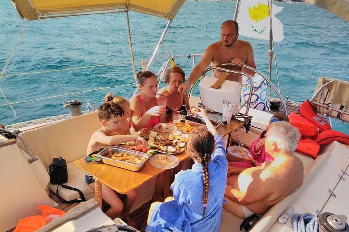 This 5-hour cruise morning or afternoon cruise will take you to see the beautiful, unspoiled beaches of Cyrpus on a sailing yacht. You will depart at 10:30 and return at 15:30 , or 16:00 to 21:00. On this tour, you will be able to stop off for swimming with your friends or family, sun bathing and relaxing, or experiencing the wonderful underwater world with our complimentary Mask. You will have the opportunity to sail the yacht yourself with an experienced skipper on-board.